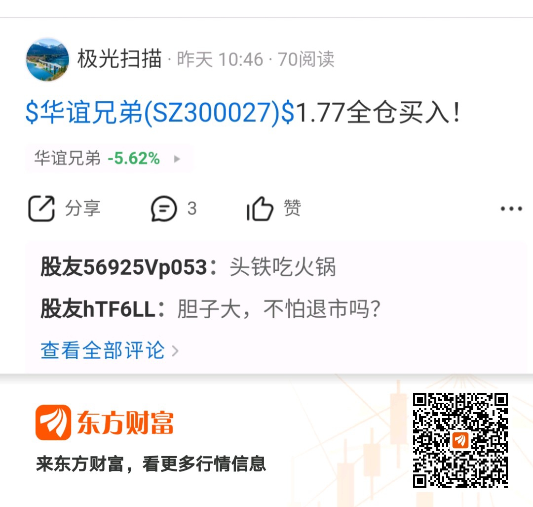 温馨提示: 1.根据《证券法》规定,禁止编造、传播虚假信息或者误导性信息,扰乱证券市场;2.用户在本社区发表的所有资料、言论等仅代表个人观点,与本网站立场无关,不对您构成任何投资建议。用户应基于自己的独立判断,自行决定证券投资并承担相应风险。《东方财富社区管理规定》