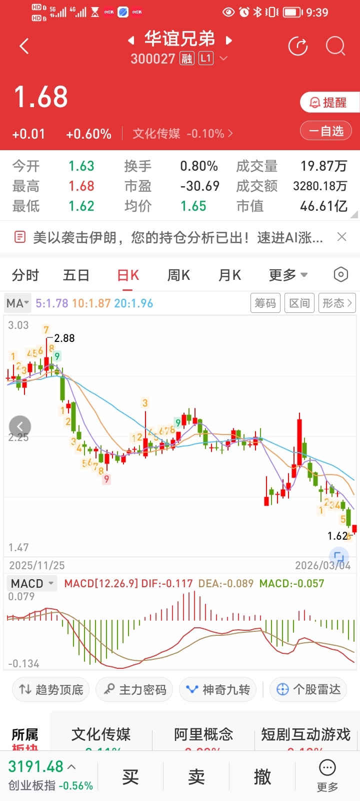 一个康美药业,一个华谊兄弟 一个中公教育 都是老股票热门龙头,没有一个涨的,所有 选股以后一定要避开热门股名气大的股票 里面一堆韭菜趴窝在里面 怎么可能会涨,炒股还有配合技术分析,月线不回归5日均线,就不要参与,做短线,就看60分钟K线图,长线就看,价格,和退与不退