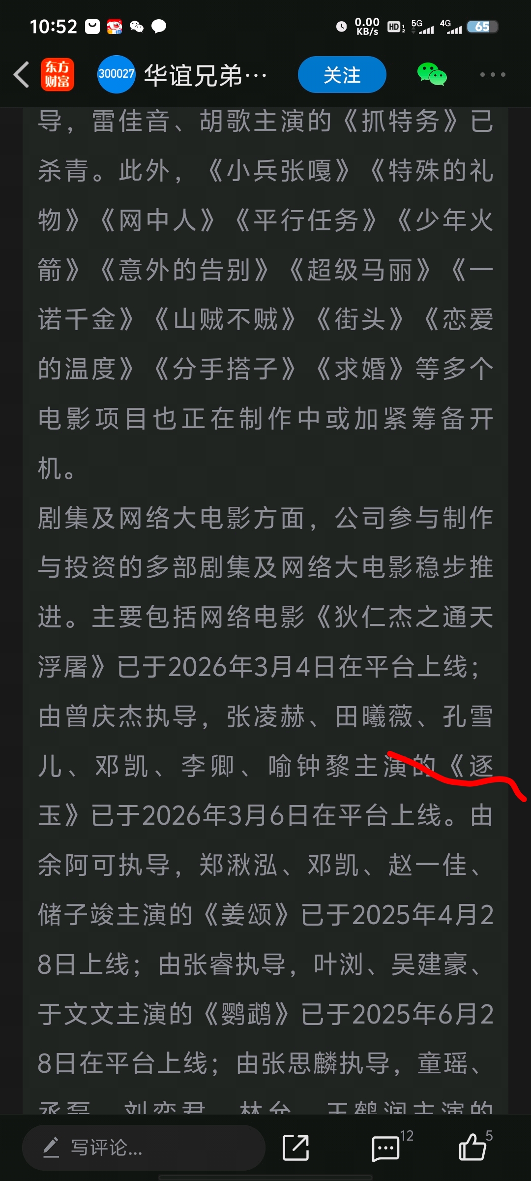 $华谊兄弟(SZ300027)$ 还说与逐玉华谊没关系的看看,人家已经公开承认了,他是控股最大得一方,只是资本家的游戏控制了而已
