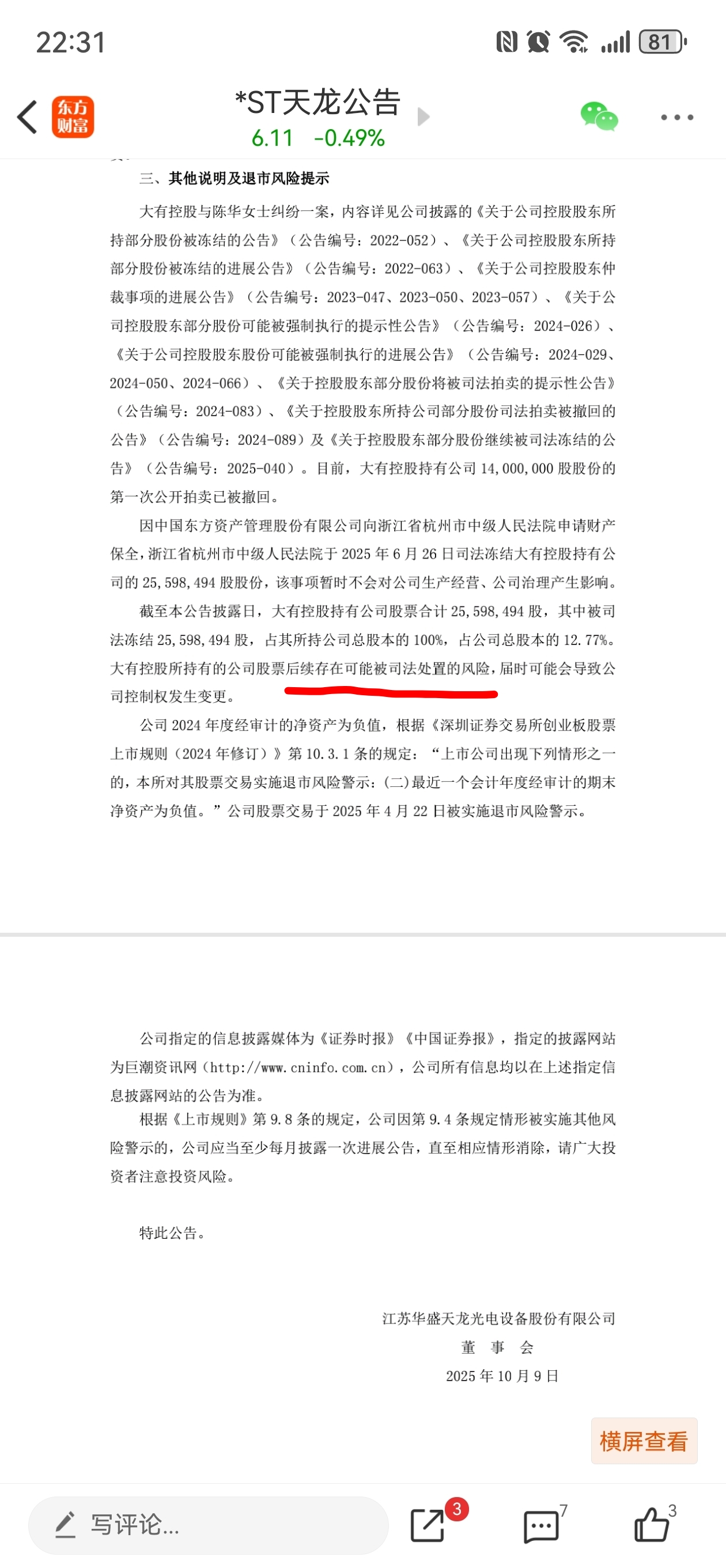 $*ST天龙(SZ300029)$ 阿龙什么时候拍卖,赶紧去接棒中迪和万方