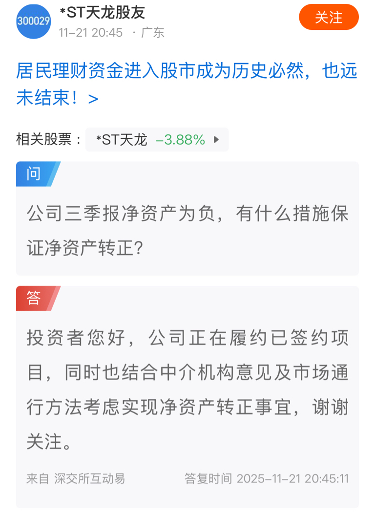 $*ST天龙(SZ300029)$ 各位老师,这句话到底啥意思?
