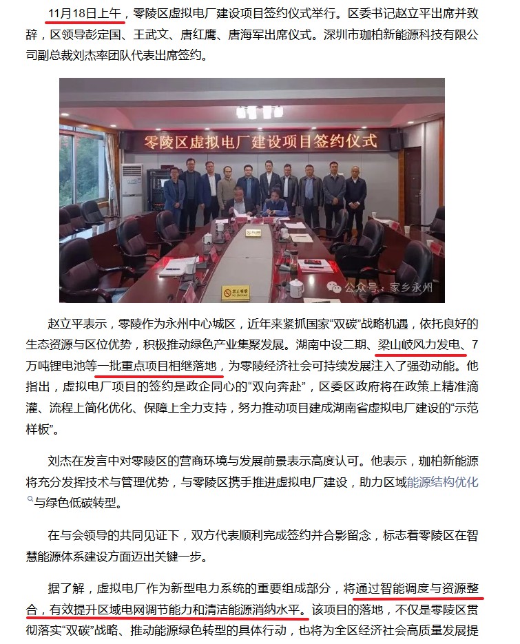 配套虚拟电厂建设项目已签约