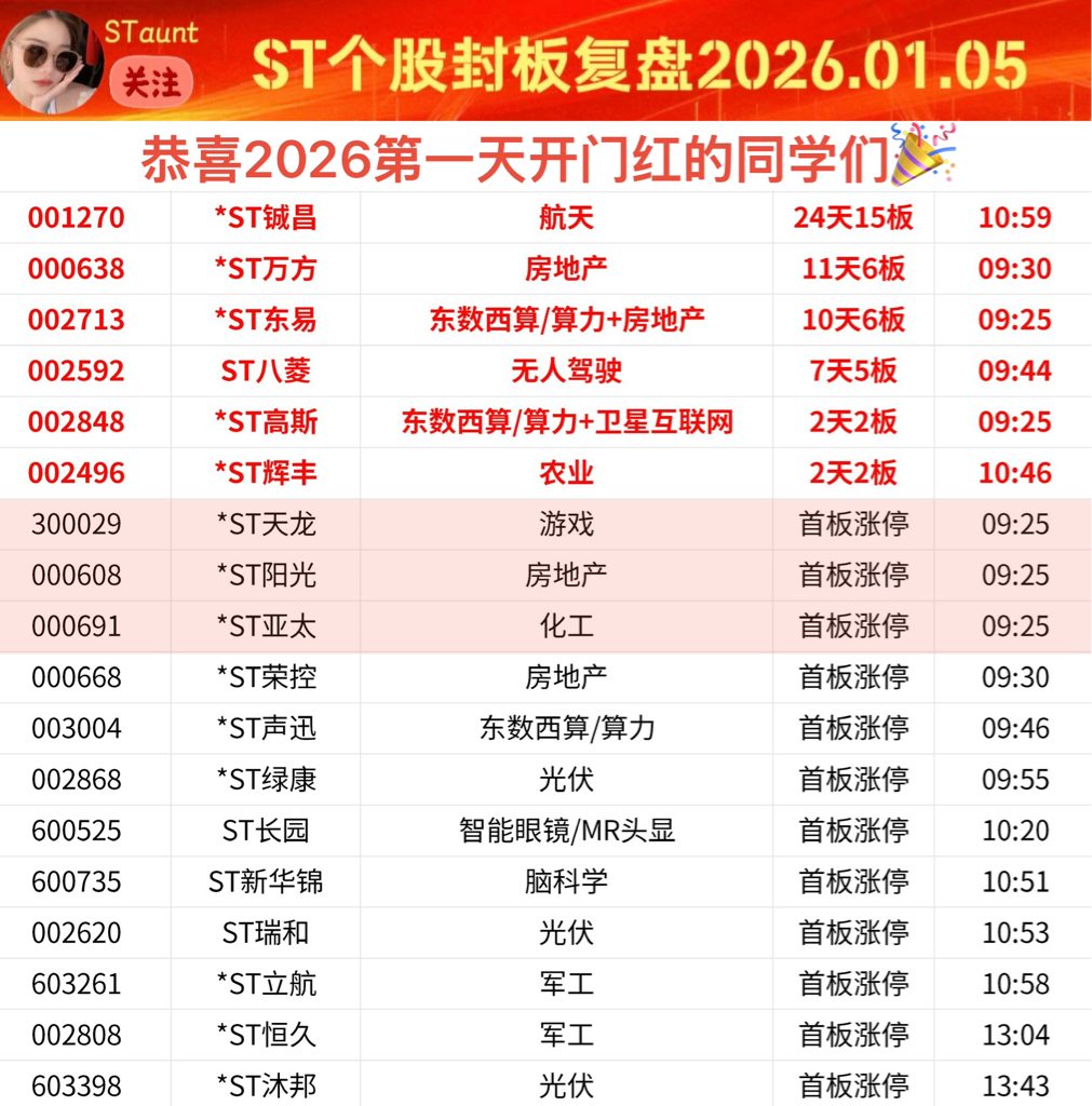 ST个股封板复盘C