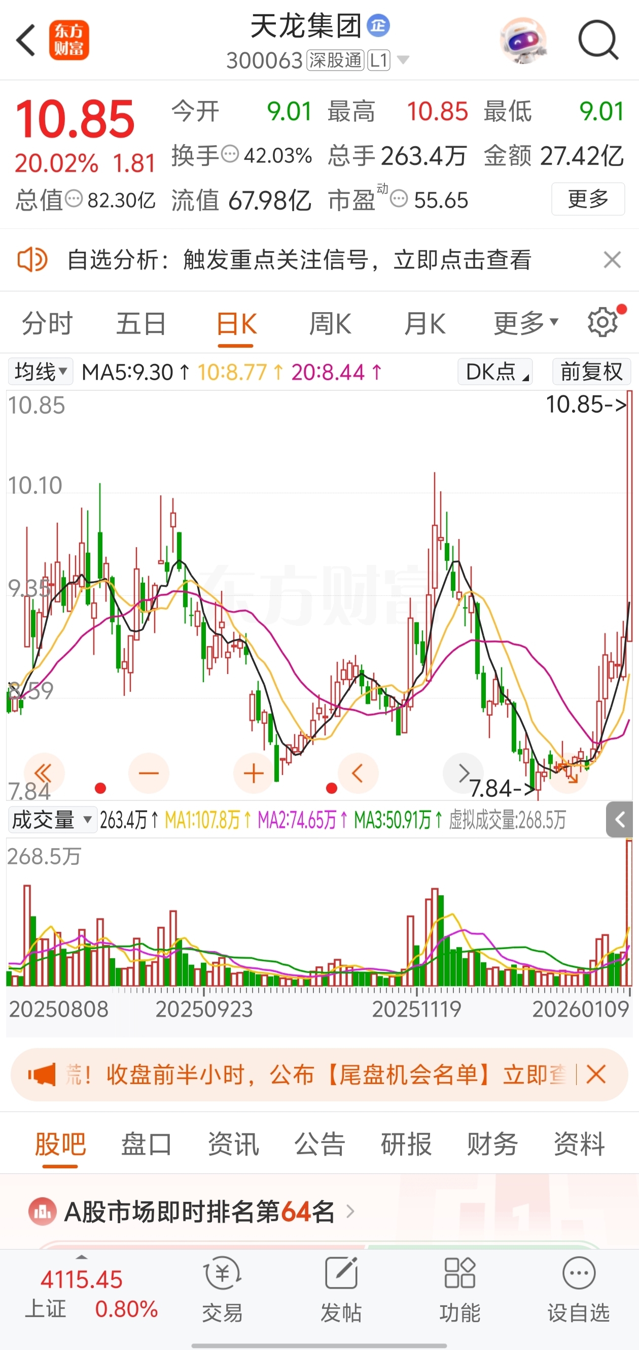 $*ST天龙(SZ300029)$ 原来今天的大威天龙在隔壁