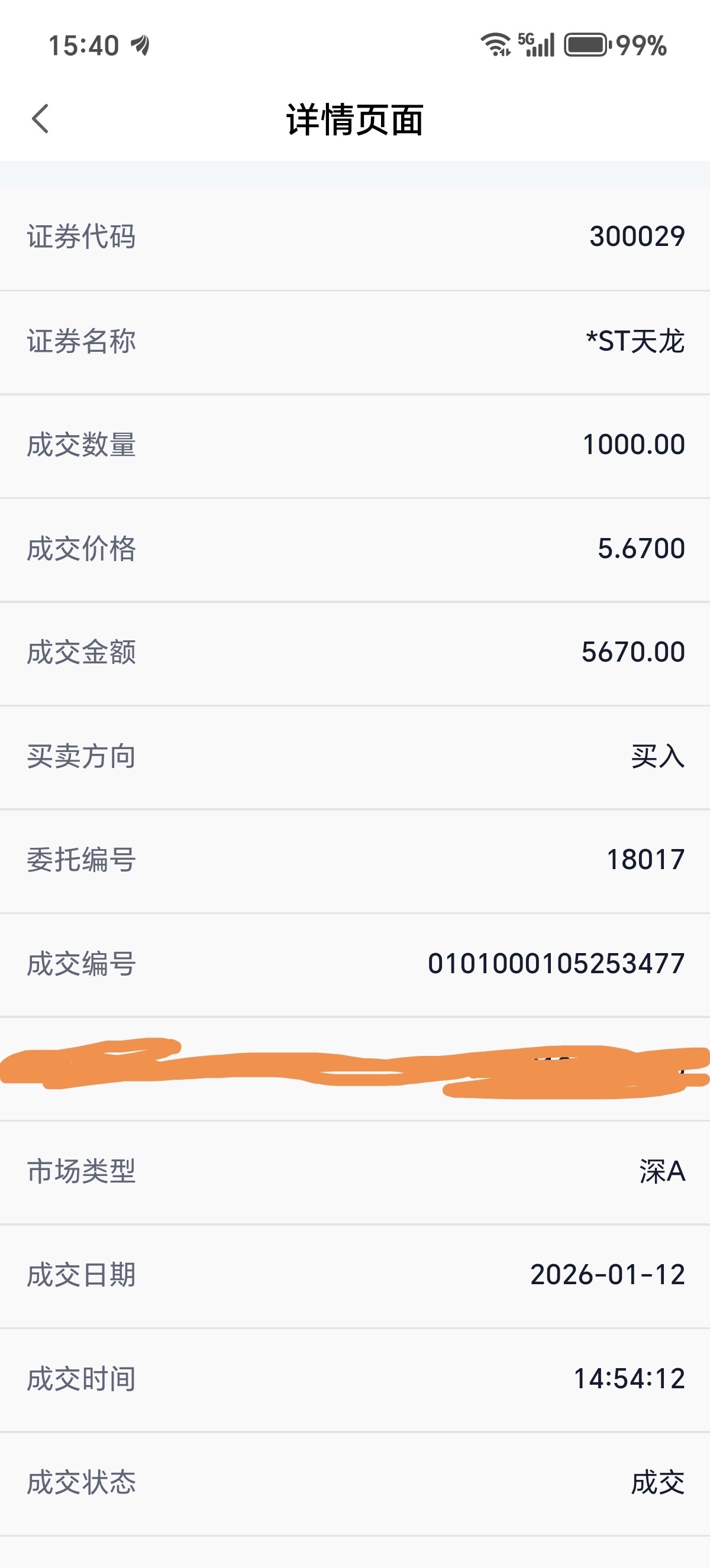 $*ST天龙(SZ300029)$ 5.6以下的单子挂子没接单,尾市5.67买了一千股。