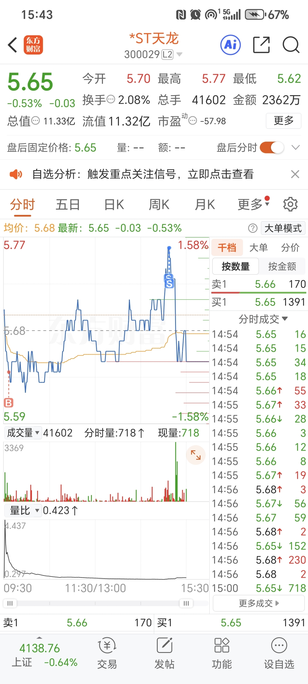 $*ST天龙(SZ300029)$ 瞎猫碰到死耗子,唉