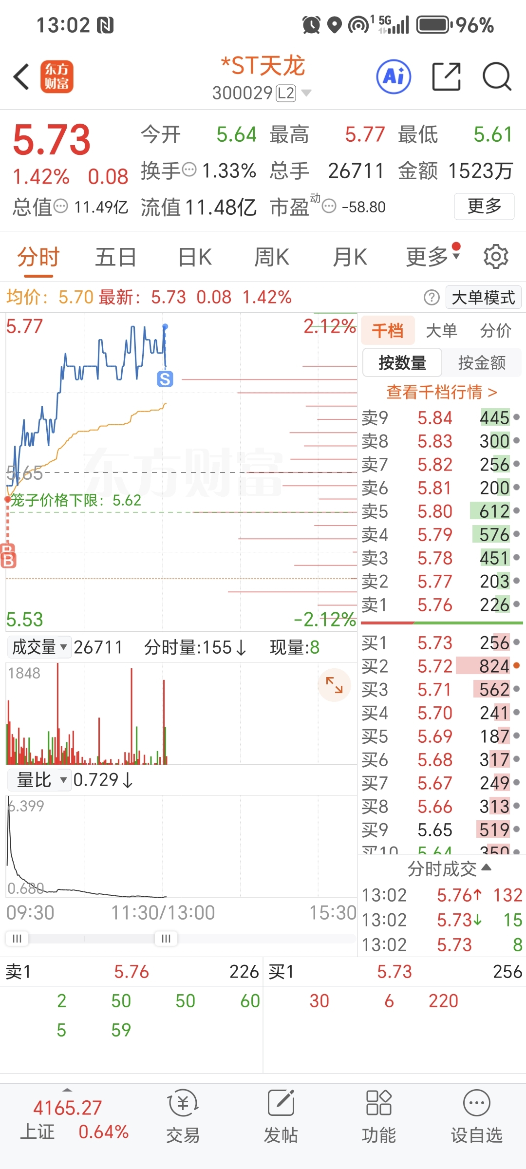 $*ST天龙(SZ300029)$ 今天是个好日子,死耗子又碰到一个
