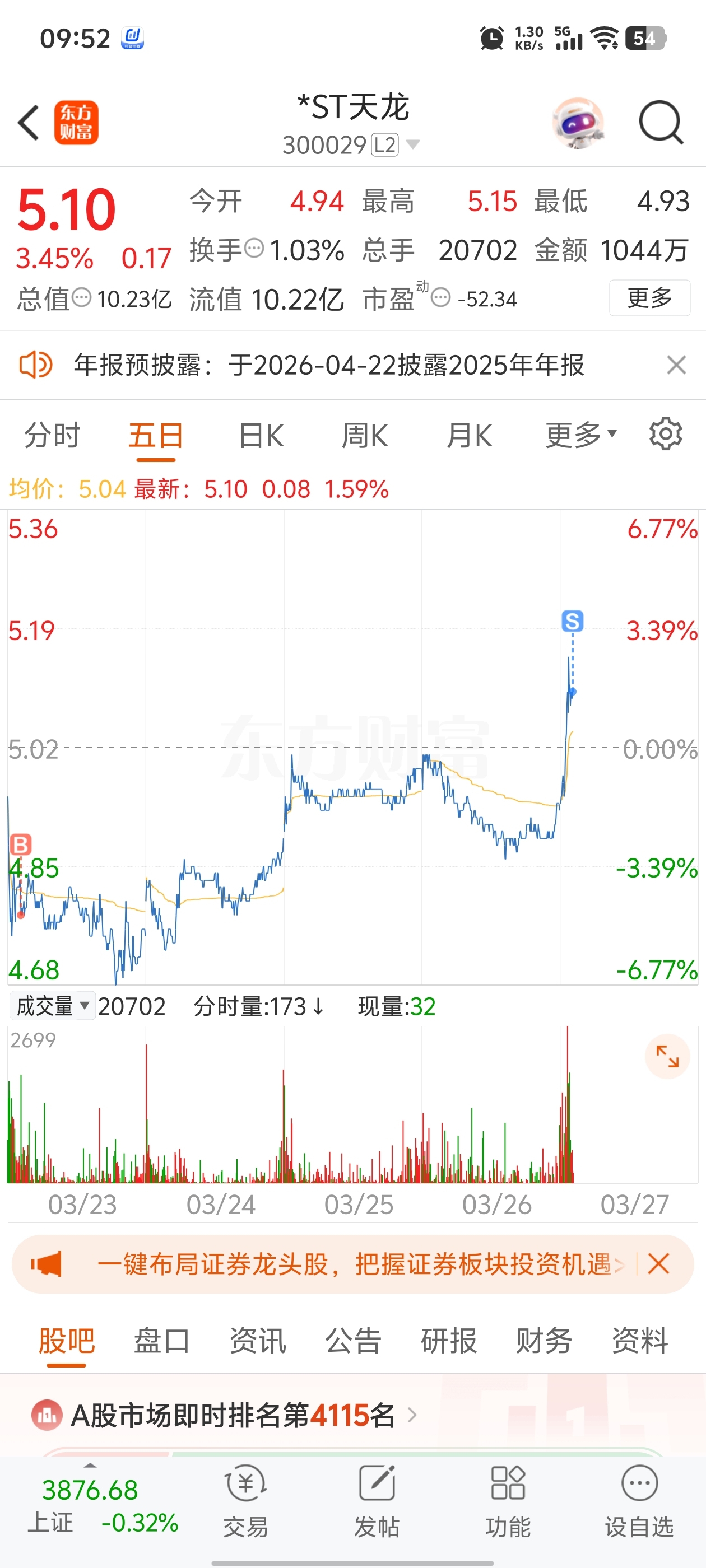 温馨提示: 1.根据《证券法》规定,禁止编造、传播虚假信息或者误导性信息,扰乱证券市场;2.用户在本社区发表的所有资料、言论等仅代表个人观点,与本网站立场无关,不对您构成任何投资建议。用户应基于自己的独立判断,自行决定证券投资并承担相应风险。《东方财富社区管理规定》