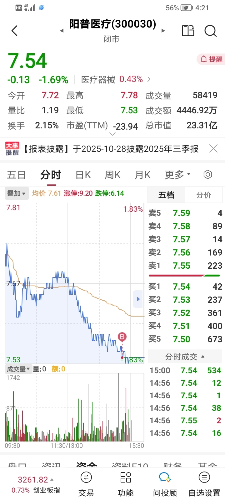 $阳普医疗(SZ300030)$ 尾盘进的,不知道是福是祸
