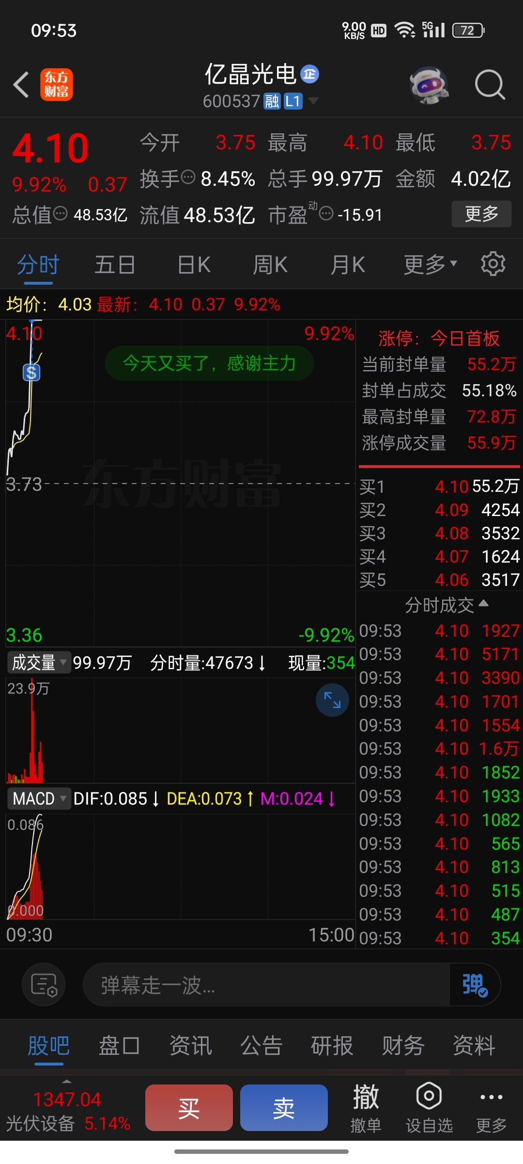 $阳普医疗(SZ300030)$ 涨停板卖出亿晶光电