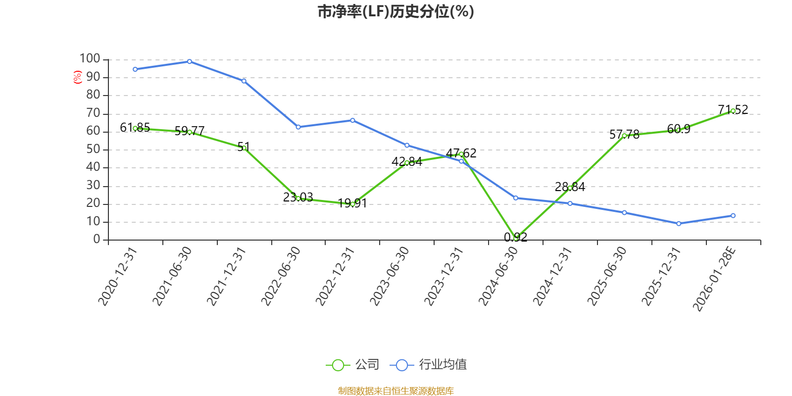 市盈率、市净率为负时,不显示当期分位数,会导致折线图中断。