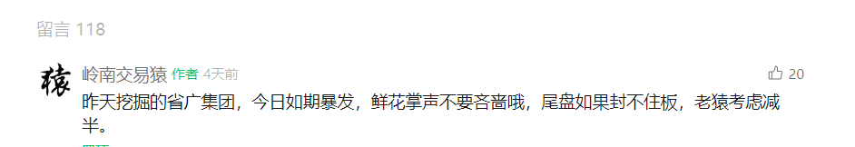 $省广集团(SZ002400)$省广集团002400:他昨日表现是超预期的,小红书题材昨天大分歧,他却逆势承接走强。这也得益于他既有小红书题材,又有抖音题材,和这些巨头都有合作,消息面无论什么样,他都能应付。目前策略上,手里的继续跟踪下波段吧,走的没啥问题。省广集团,是老猿上周二挖掘潜伏的,挖掘是非常及时的,当时也在留盐区说了,当时思考是小红书题材还发酵空间,他家基本面正宗,和小红书确实有实实在在的合作,自然有望走强。果然隔日小红书继续强势,他如期出现涨停走势,本着不贪的原则,老猿减半了,剩下的一直还在手里,毕竟波段角度并没走坏。从挖掘至今的整体表现也是相当不错的。