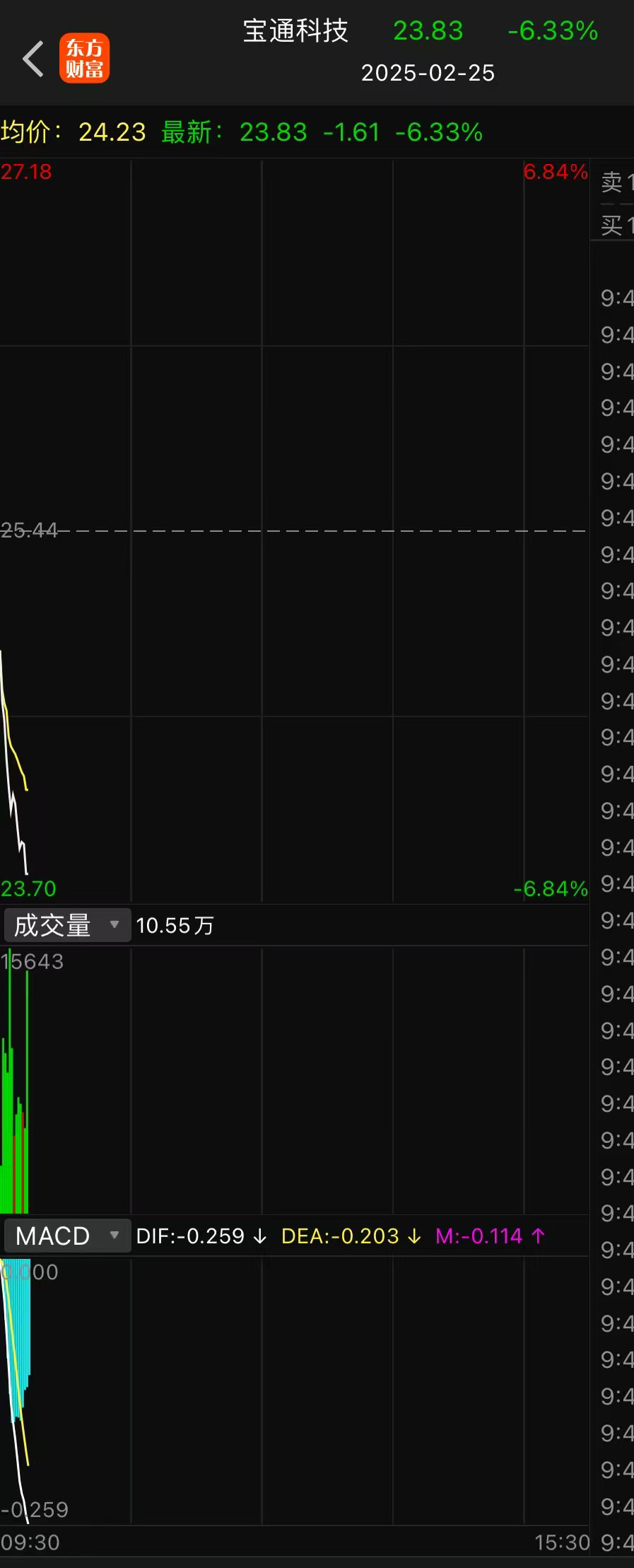昨天早盘9.35分跌幅7个点给洗出去啦,他奶奶的以为要跌停全是放量恐慌盘给洗出去