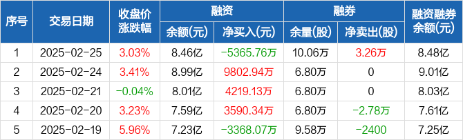 宝通科技:融资净偿还5365.76万元,融资余额8.46亿元(02-25)