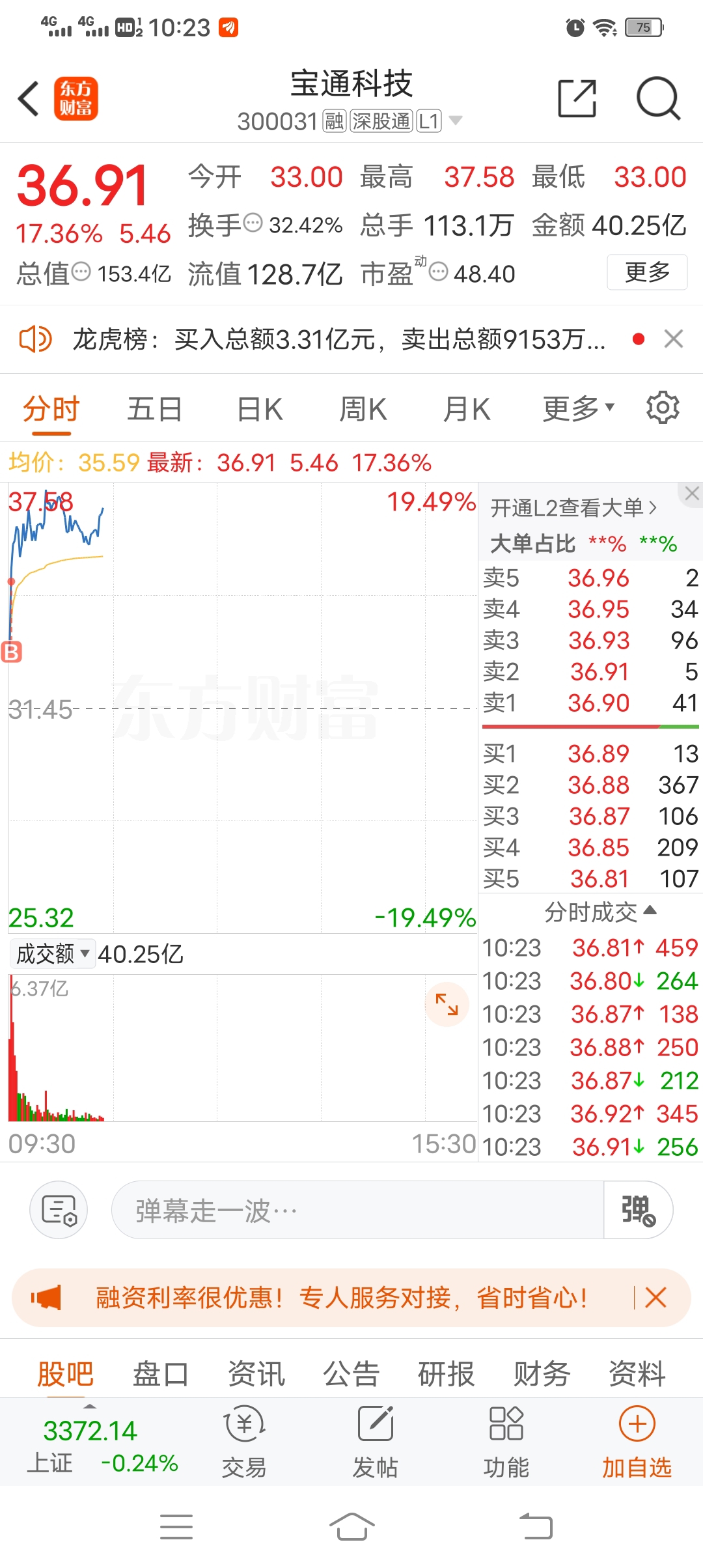 $宝通科技(SZ300031)$ 25分竞价没买到,一下涨这么猛