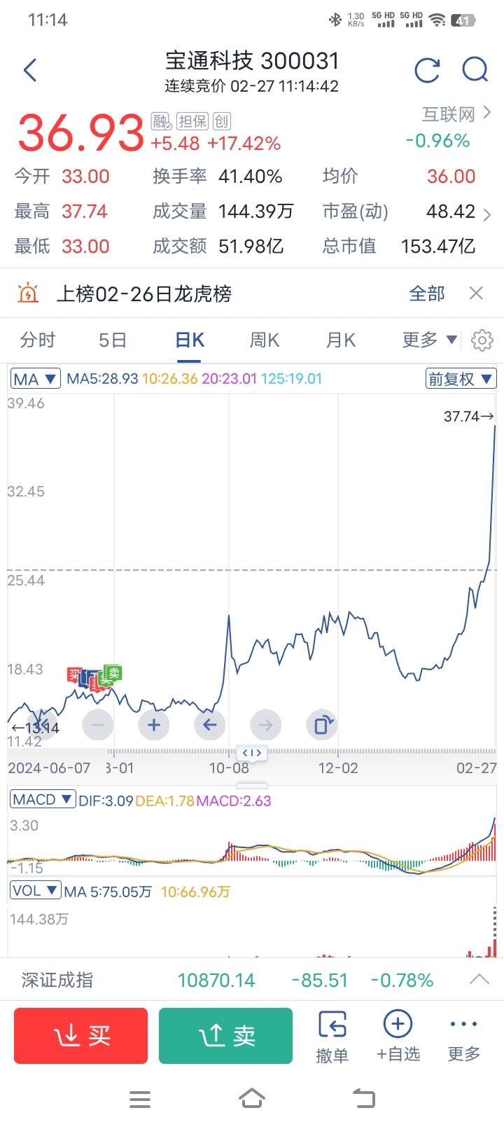 $宝通科技(SZ300031)$ 谁能拿到现在啊
