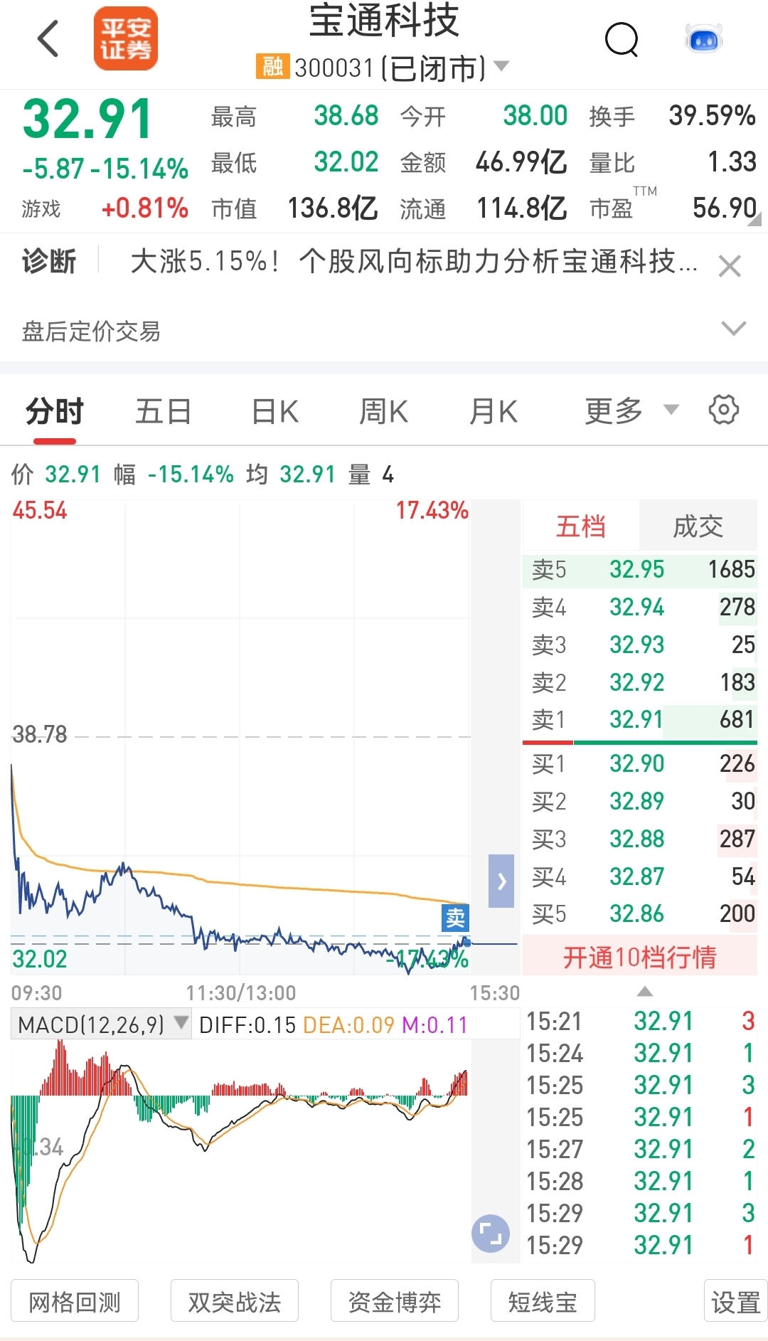 $宝通科技(SZ300031)$ 熬不住了,还拉了尾盘,太弱了。不敢拿了。亏了15个点