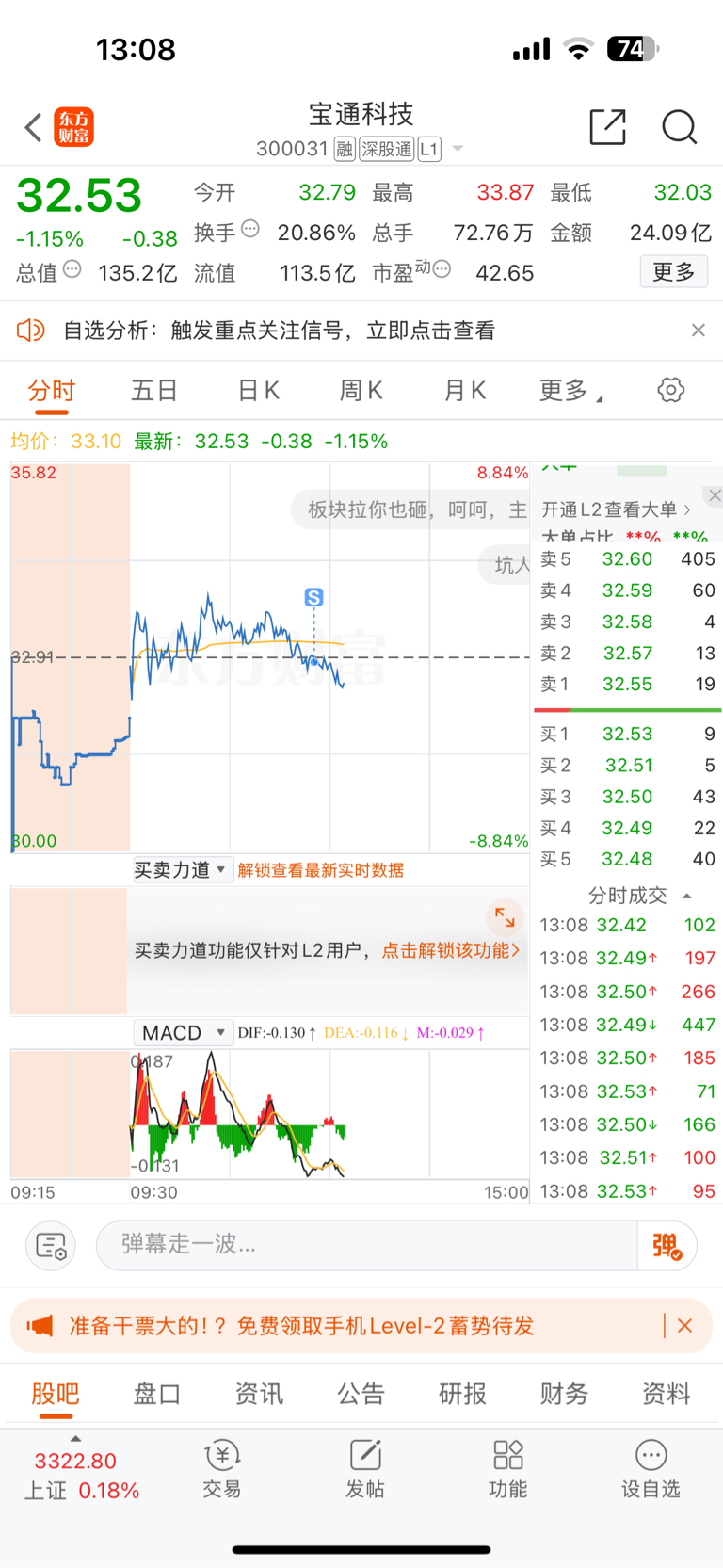 $宝通科技(SZ300031)$ 保本跑咯