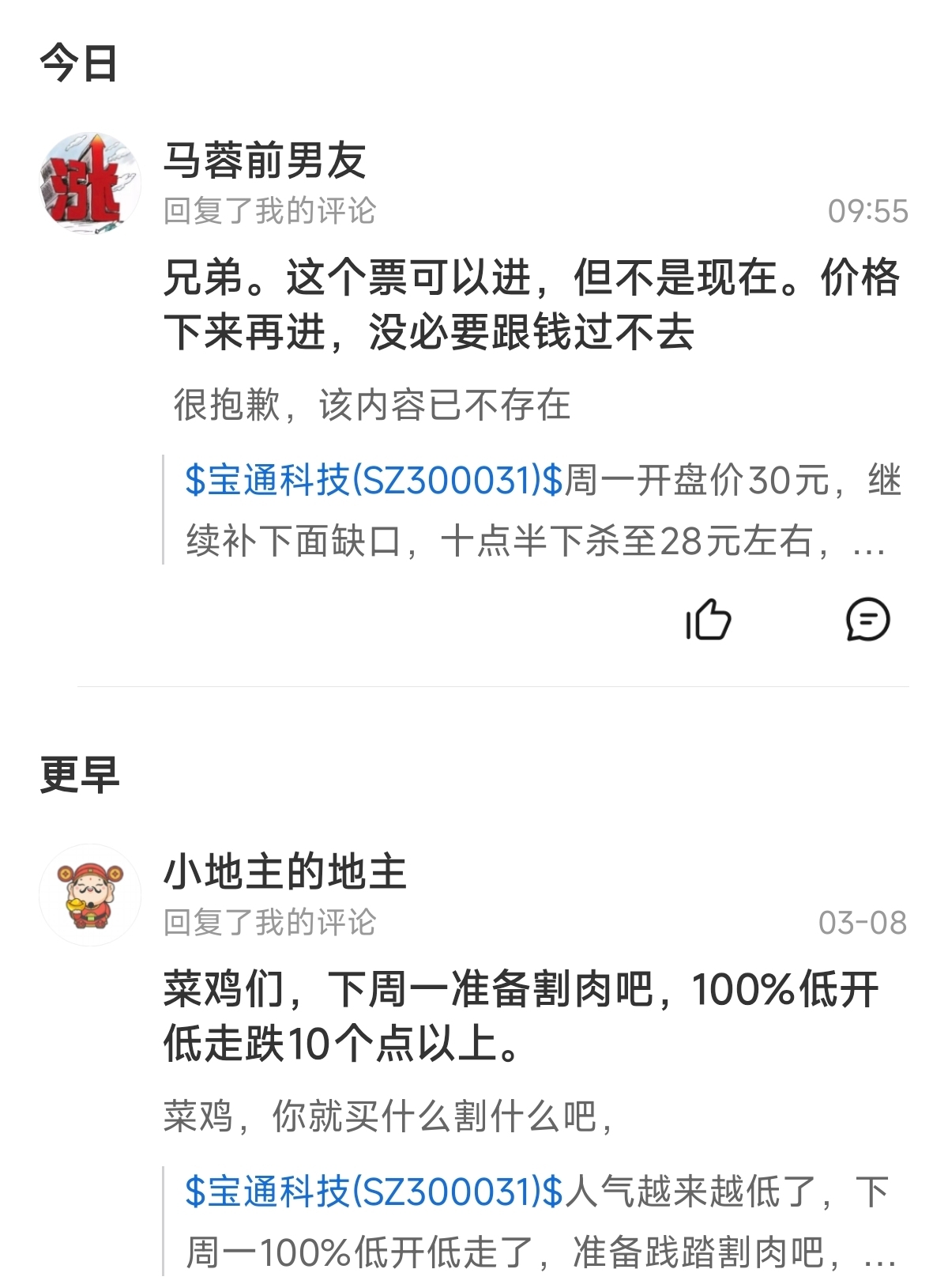 $宝通科技(SZ300031)$ 看他急了,回复了又删除