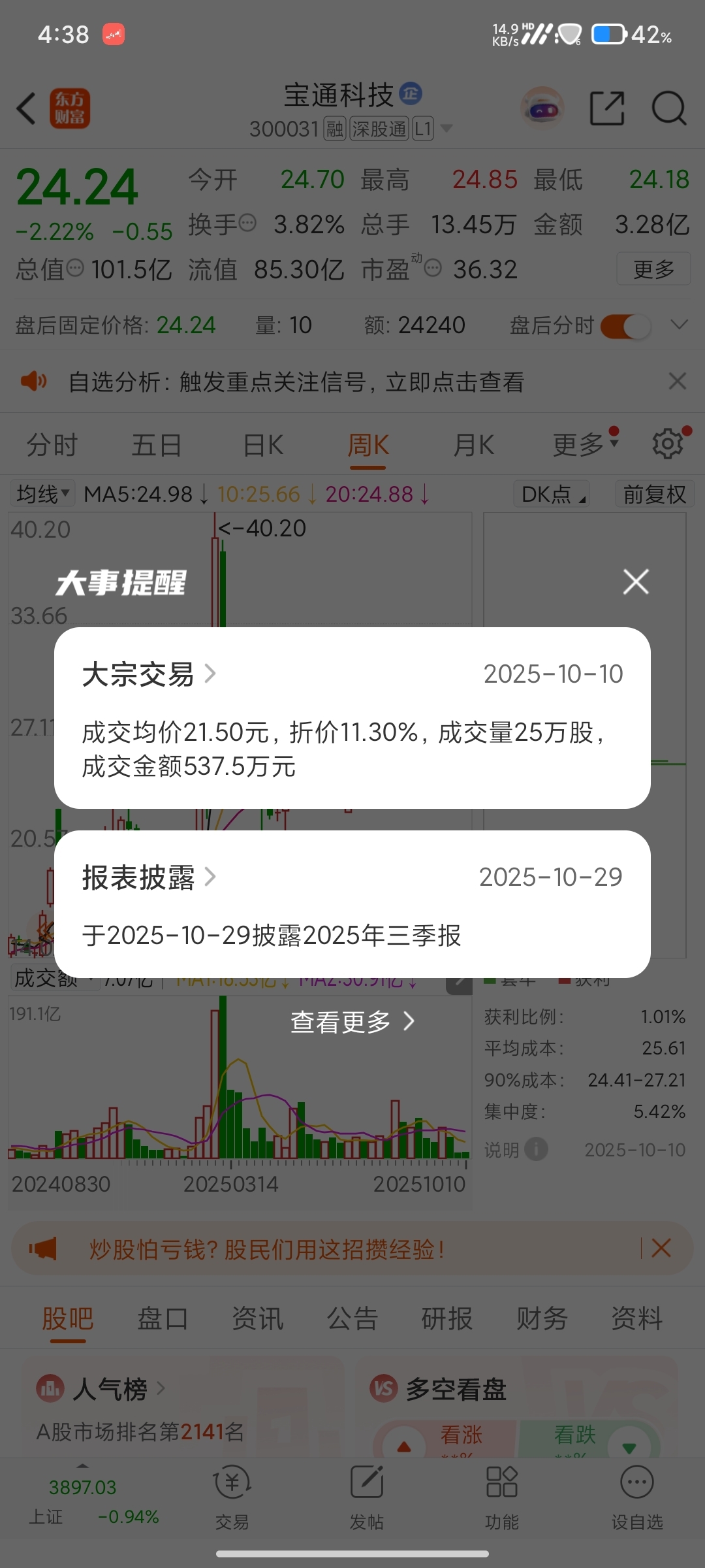 $宝通科技(SZ300031)$ 好狠的大宗,至于吗?-11.3%也要跑