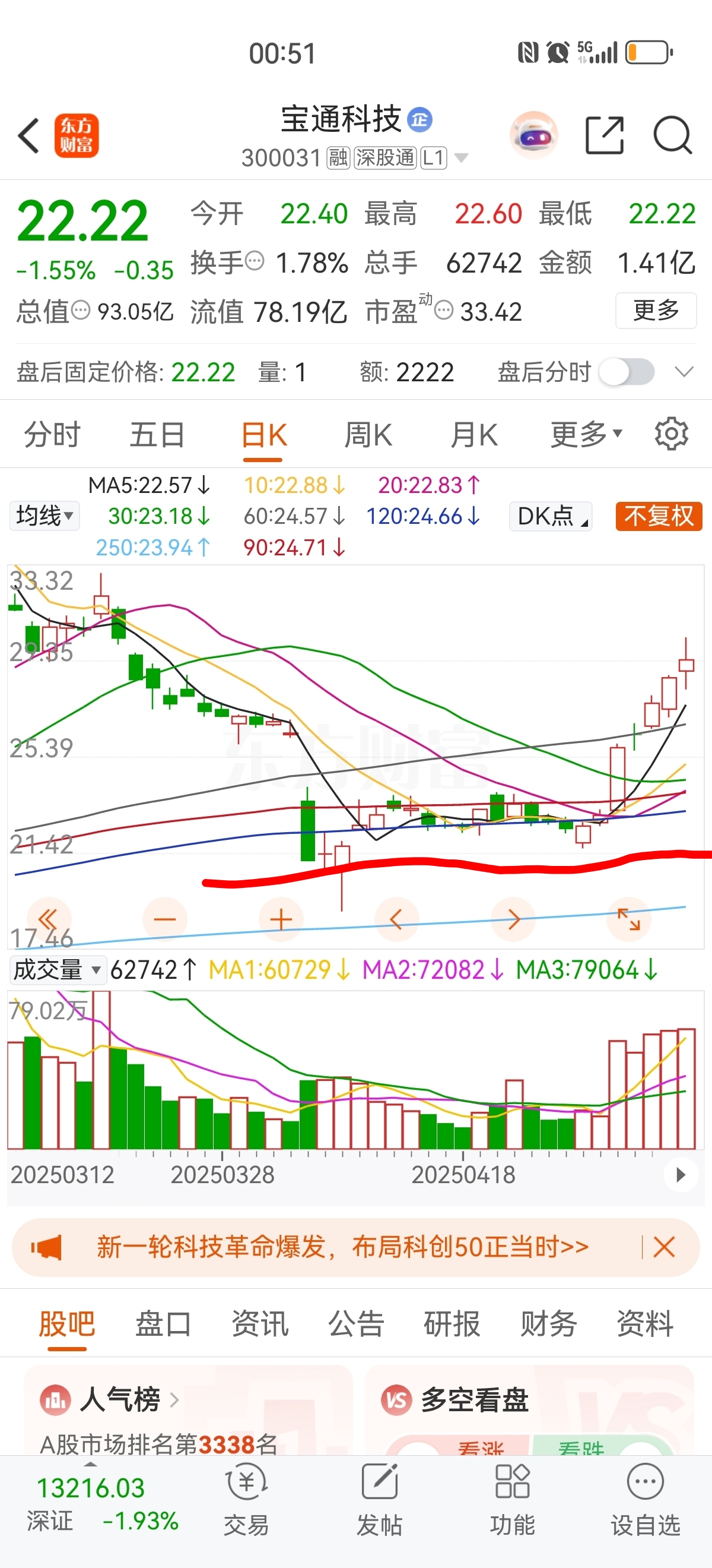 $宝通科技(SZ300031)$ 这个22平台保不住,得去18—19的平台,漫长的阴跌,董事长早早的提裤子跑路了,一点反弹都带做的,,,