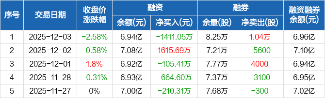 宝通科技:融资净偿还1411.05万元,融资余额6.94亿元(12-03)