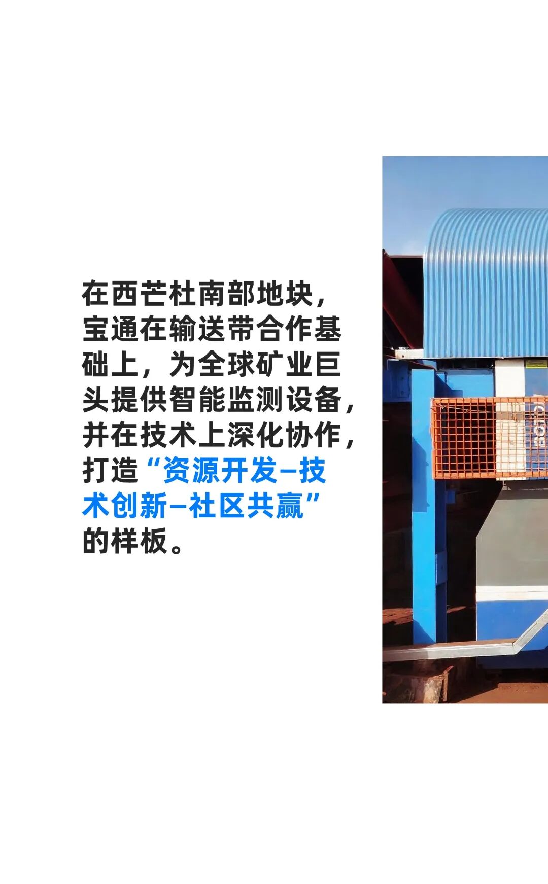 依托高质量输送带、智能监测设备、全球技术支持、本土化服务与 ESG 实践,宝通构建 A-Z 全栈式解决方案,不仅体现“中国装备和产品走出去”的实践,也通过技术创新与现场适配,构建“1小时技术支持和服务圈”,为世界级矿山的智慧化、规模化开发提供可复制的宝通方案。