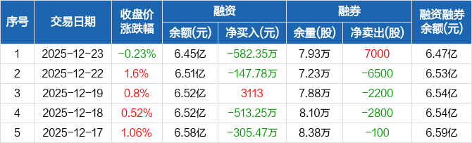 宝通科技:融资净偿还582.35万元,融资余额6.45亿元(12-23)