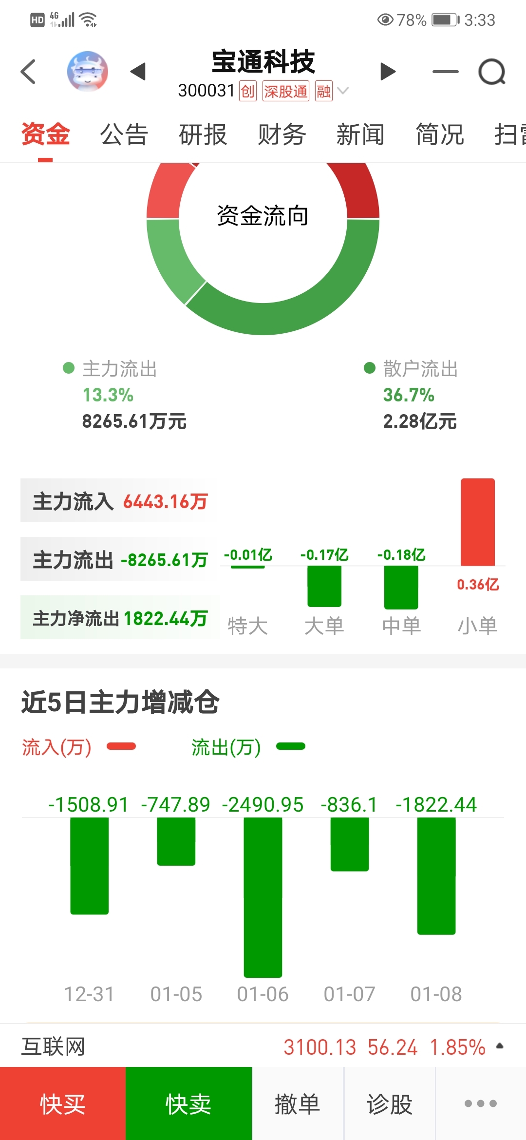 $宝通科技(SZ300031)$ 天天都在流出,问题还能微涨,什么逻辑?大家诊股一下