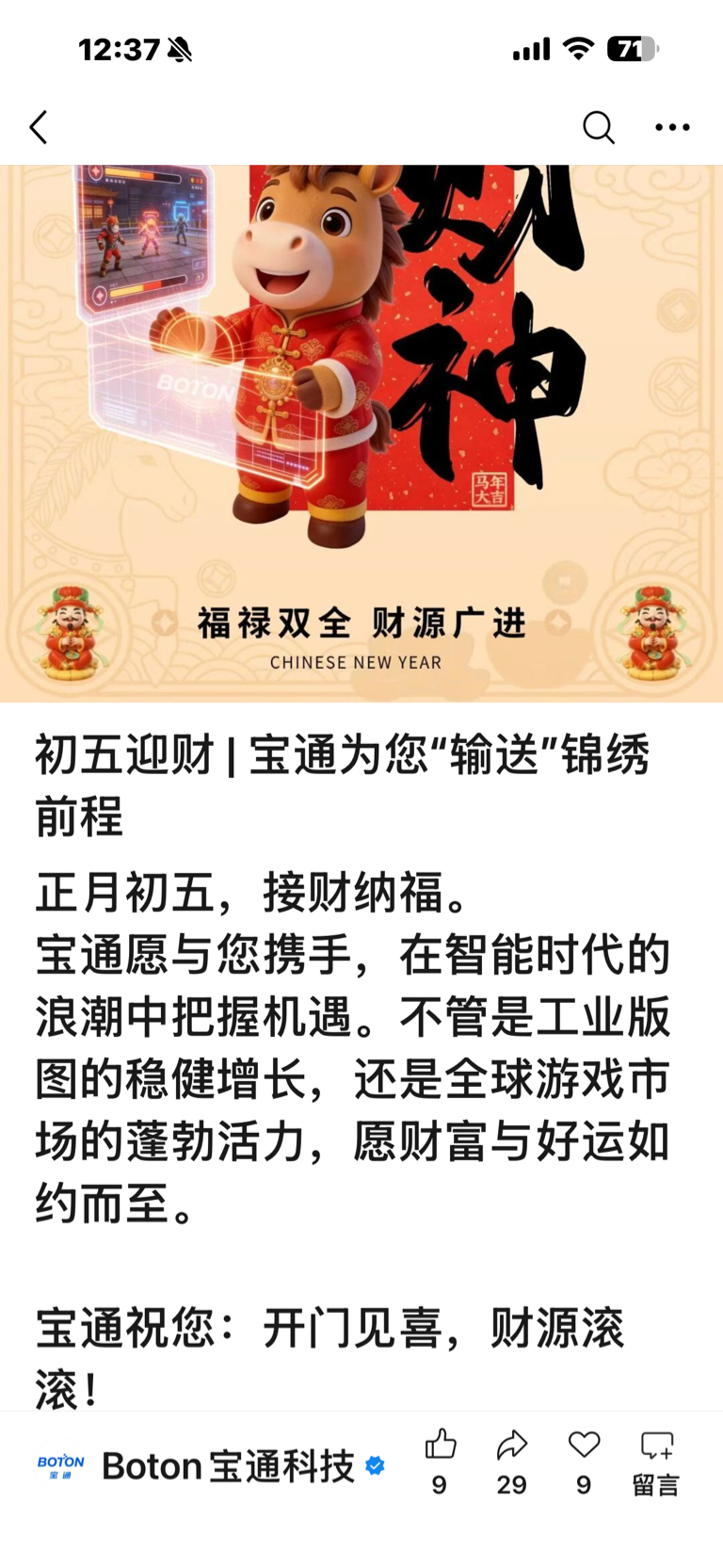 $宝通科技(SZ300031)$ 各位宝通的朋友,接宝通的财神了,祝各位马踏祥云,财源滚滚!