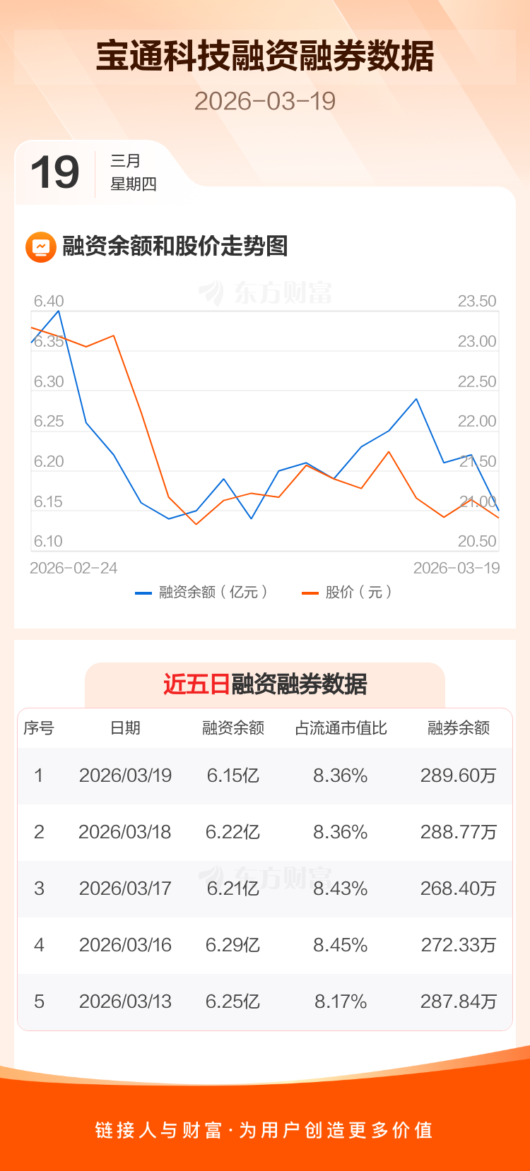 交易所最新数据显示,宝通科技于2026年3月19日获融资买入924.78万元,融资偿还1629.38万元,当日融资净偿还704.6万元。目前,该股融资余额6.15亿,占流通市值比例为8.36%。