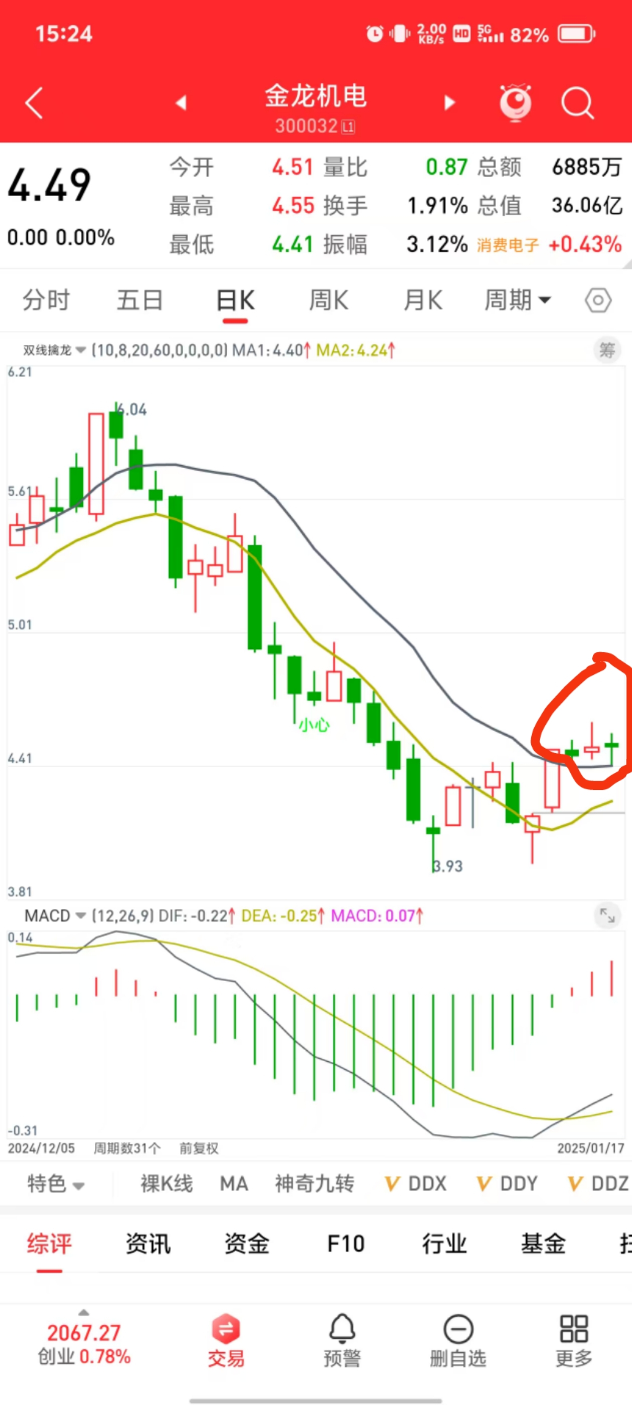 $金龙机电(SZ300032)$ 连续3天最低价在4.40以上,也就是灰线之上,说明短期有牛股特征