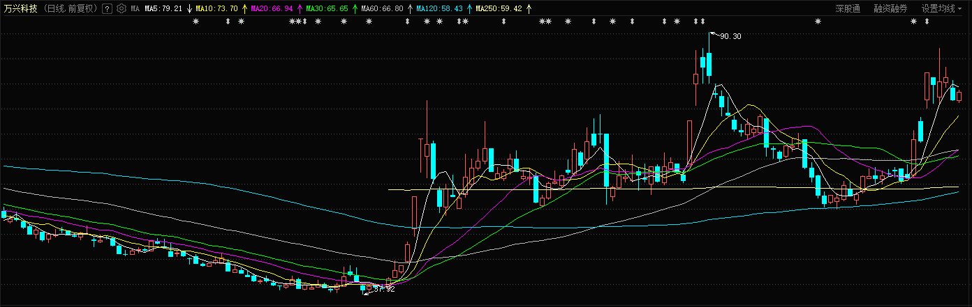 技术上看,万兴科技节后一波上升后已经横盘洗了一周左右,调整比较充分了,浮筹已经洗的差不多了,今天在10日线的支撑下有望重启上行趋势,回踩的时候是可以关注下