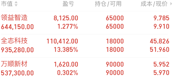 三、持仓分析:领益智造、全志科技、万顺新材
