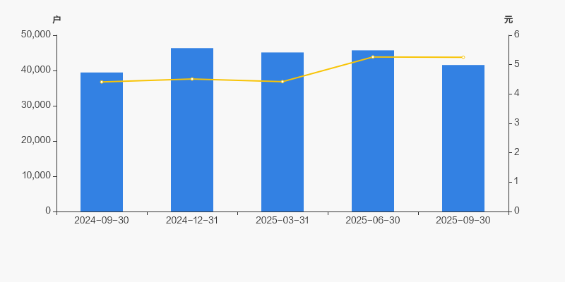 2024年9月30日至今,公司股东户数有所增长,区间涨幅为5.37%。2024年9月30日至2025年9月30日区间股价上涨19.05%。