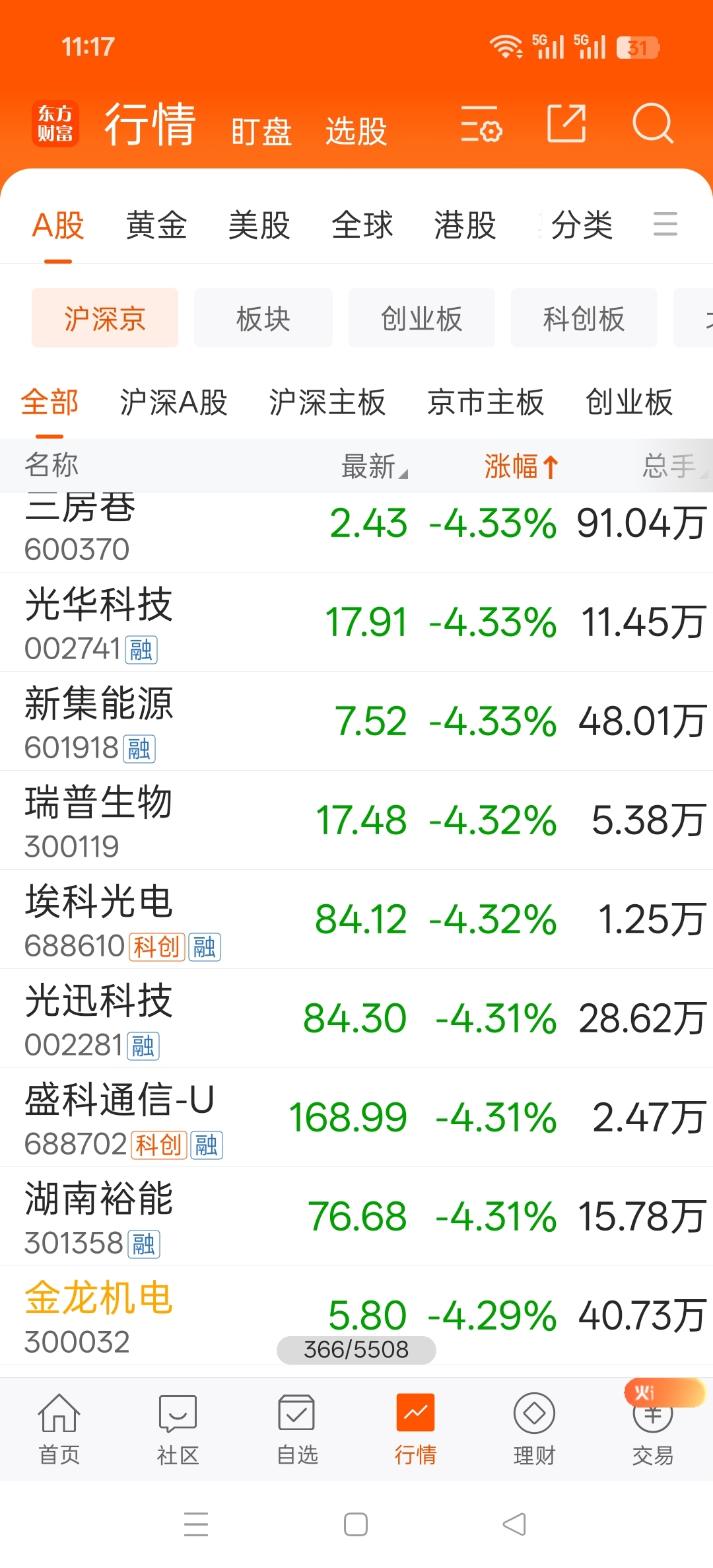 $金龙机电(SZ300032)$ 市场倒数第366名
