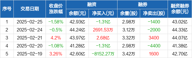 同花顺:融资净偿还1.31亿元,融资余额42.93亿元(02-25)