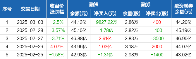 同花顺:融资净偿还9827.22万元,融资余额44.12亿元(03-03)