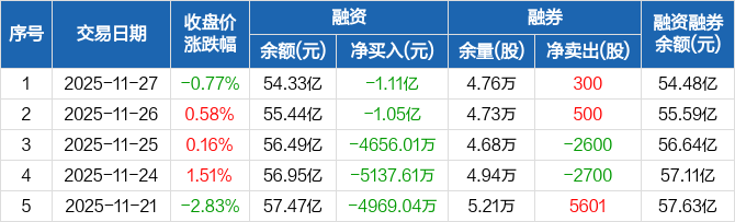 同花顺:融资净偿还1.11亿元,两市排名第四(11-27)