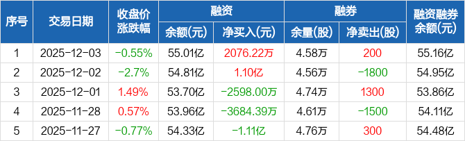 同花顺:融资净买入2076.22万元,融资余额55.01亿元(12-03)