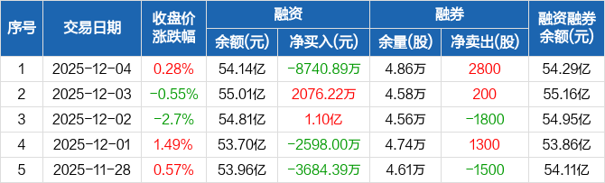 同花顺:融资净偿还8740.89万元,两市排名第18(12-04)
