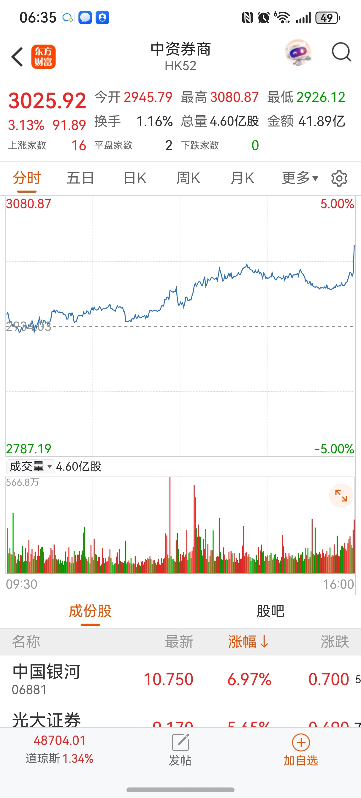 $同花顺(SZ300033)$ 港股尾盘中资券商拉升,对周一A股券商有正面影响吧!