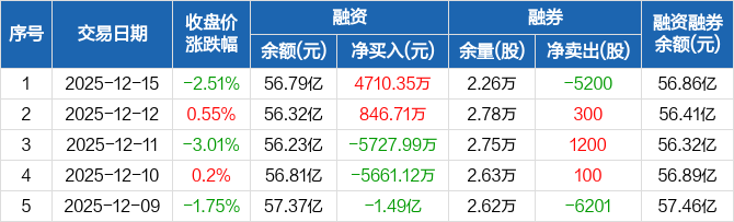 同花顺:融资净买入4710.35万元,融资余额56.79亿元(12-15)
