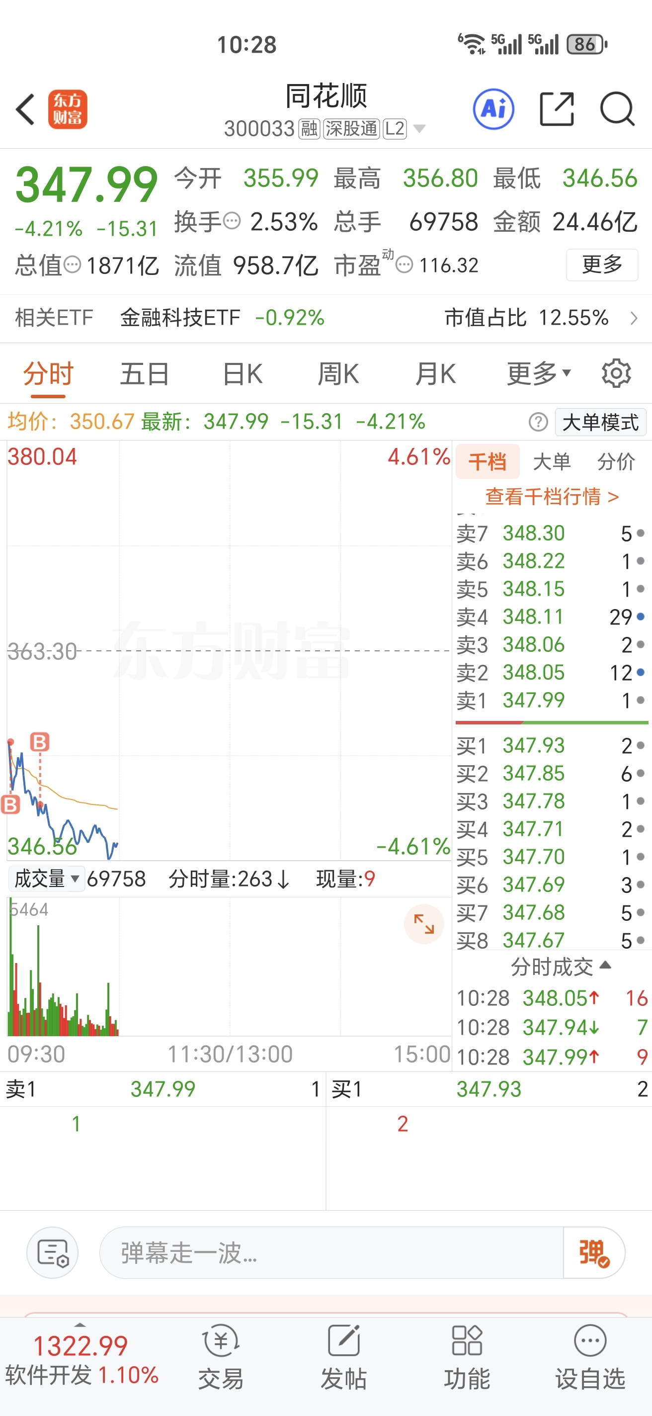 $同花顺(SZ300033)$ 吃肉没赶上,挨揍没落下