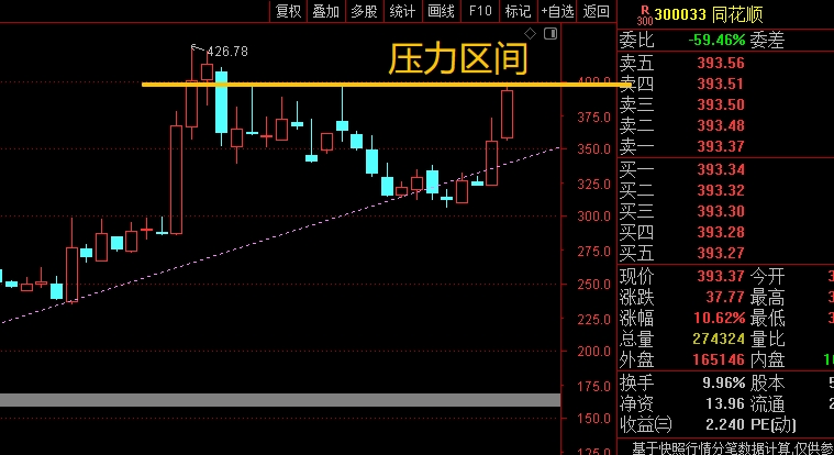 $同花顺(SZ300033)$ 近期反弹趋势比较强,连续的拉升后,这里主要是看周线头上前高区域的压力,能站稳就漂亮了,至少可以震荡盘整,但如果被压制就要注意短线的回落风险,需要控制仓位应对,前面低吸的仓位这里高抛也是个不错的选择。#复盘记录# #炒股日记#