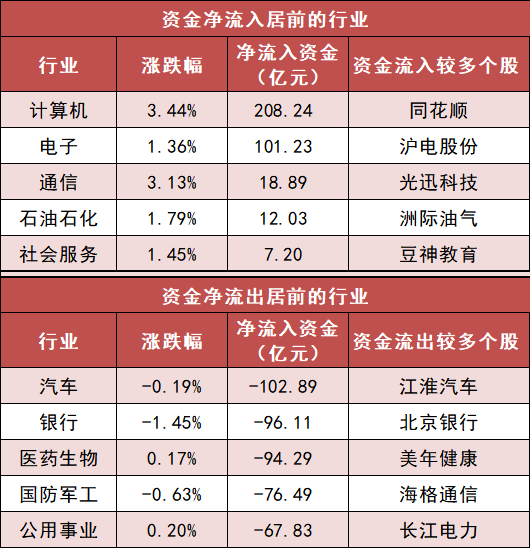 【14日资金路线图】两市主力资金净流出超500亿元 计算机等行业实现净流入