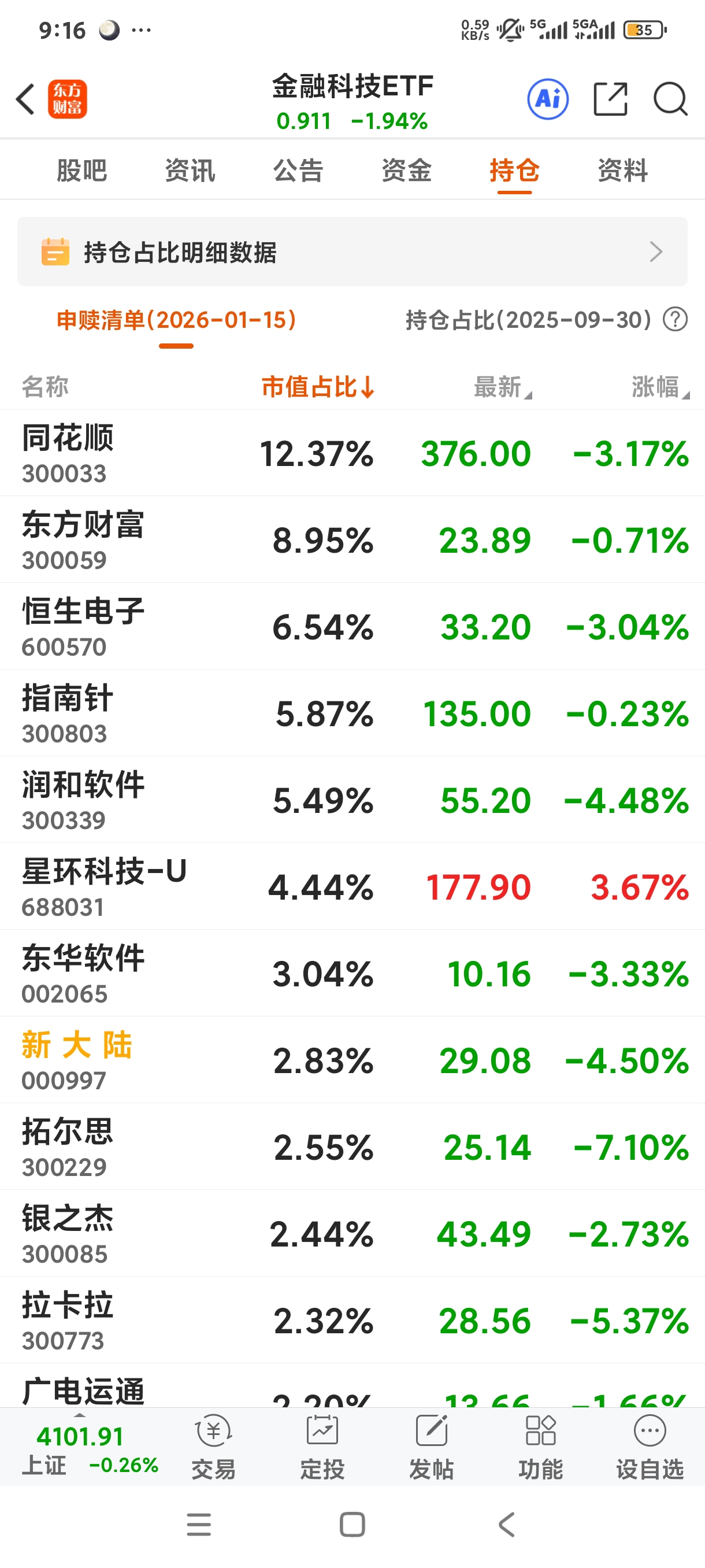 我是小白,拿了三天,跌了三天,刚刚看到持仓里面大部分跌,金融科技不行了么,下周一