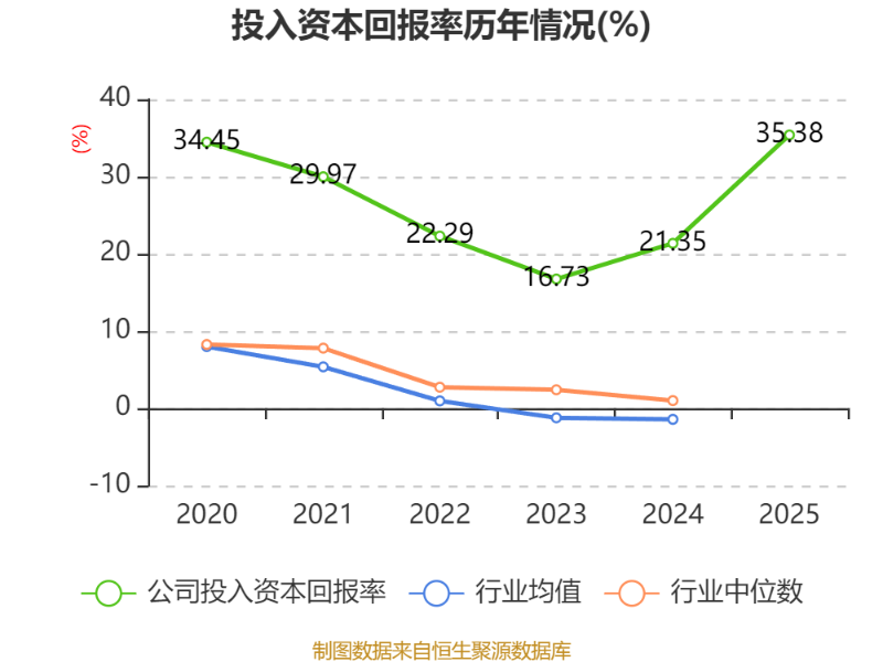 数据显示,2025年公司加权平均净资产收益率为38.54%,较上年同期上升13.74个百分点。公司2025年投入资本回报率为35.38%,较上年同期上升14.03个百分点。