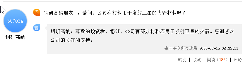 这是20250815钢研高纳董秘的回答。