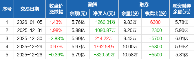 钢研高纳:融资净偿还1260.31万元,融资余额5.76亿元(01-05)